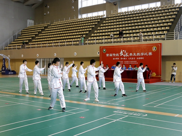 此次传统武术养生教学比赛不仅是我校传统体育课程教学改革措施之一,也是“不忘初心、牢记使命”主题教育学校体育工作整改的重要举措。教、练、赛有机结合,首次通过校内教学比赛来展示和巩固传统武术养生类课堂教学成果,进一步提升学生武术技能与学习热情,促进终身锻炼习惯养成,是传统武术养生类课程课上课下有效结合的一次新的尝试与探索。