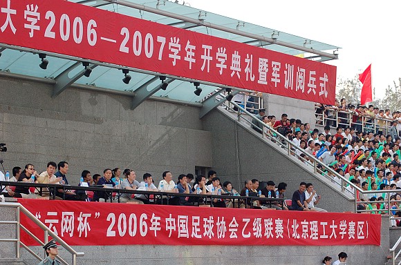 9月23日下午,“云网杯”2006年中国足球协会乙级联赛(北京理工大学赛区)最后三轮的比赛拉开了帷幕,我校足球队此次坐镇主场迎战天津东丽足球队。在联赛上半程的比赛中,我校足球队受对方主场恶劣场地的影响,在客场曾以0:0与对方打成平局(点击此处可进入相关链接)。此次主场作战,又适逢2006级新生入校,全队上下士气高昂,决心给全校师生员工一个惊喜。校长匡镜明,党委副书记、副校长杨宾,党委副书记、工会主席侯光明等学校领导也来现场观战。