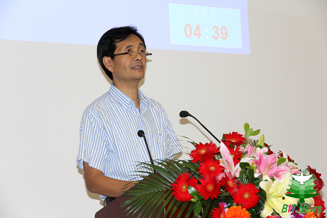 工程硕士校友理事会会长河北省保定市人民政府副市长杨猛代表校友发言,感谢母校多年的培养,表示会秉承“德以明理、学以精工”的校训,继承和发扬北京理工大学的光荣传统和优良学风。